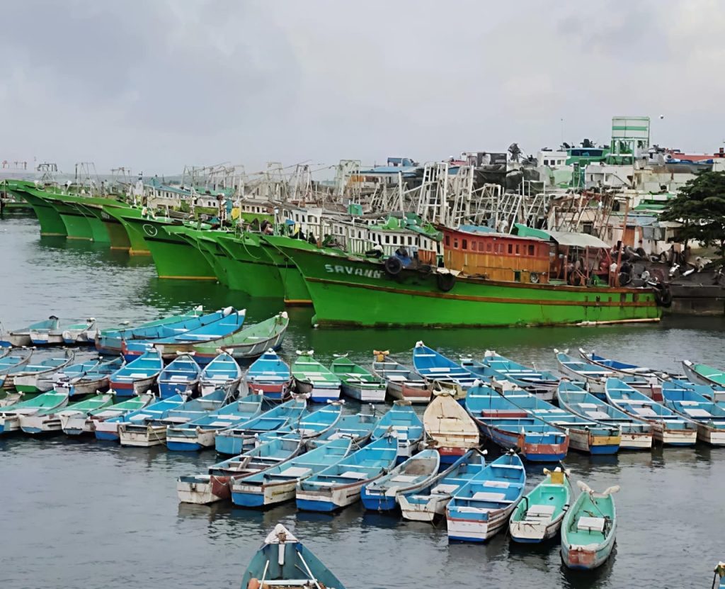 தற்போது கடந்த 3 நாட்களாக காற்று எச்சரிக்கை காரணமாக மீனவர்கள் யாரும் மீன்பிடிக்க செல்லவில்லை.